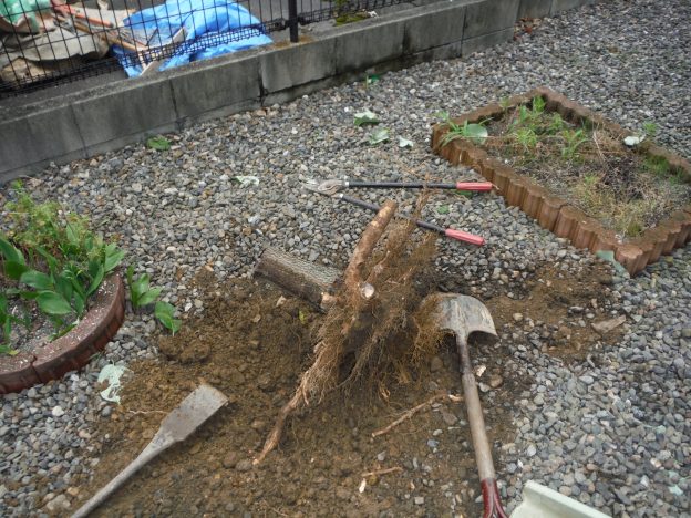 根株を残しておいては邪魔になるし、そのあと何か建てたり新しい木を植えたりすることもできません。