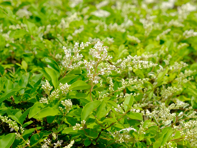 プリペットは、洋風の庭の生垣として広く利用されている低木です。特に白い斑入りの「シルバープリペット」や、明るい黄色の斑が入る「レモンライム」というカラーリーフ品種が人気を集めています。